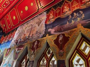 We began by being welcomed in to the temple, after taking our shoes off to be respectful, and the children showed a brilliant knowledge already from only 2 lessons – we were very proud teachers! The children then had the story of the life of Buddha explained through the giant wall paintings.